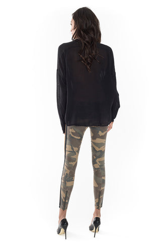 Boat Neck Elbow Sleeve Contrast Woven Top