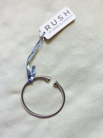 Tiana Crystal Stone Silver Open End Bangle with Gold