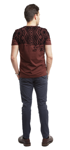 Crew Neck Jersey M T-Shirt with Geometric Print Embossed with Velvet