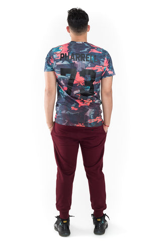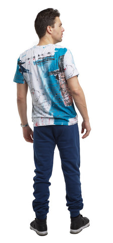 Crew Neck Jersey M T-Shirt with Geometric Print Embossed with Velvet